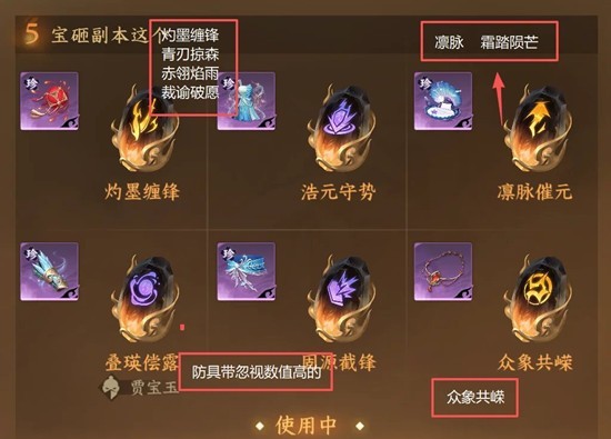 必带内功:熔甲 破霄 其他内功根据自身元素与内功词条选择优先即可)