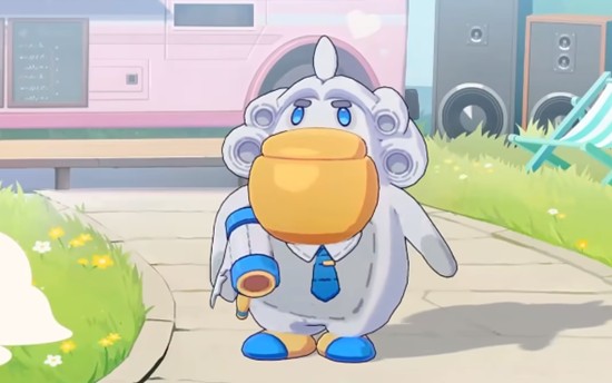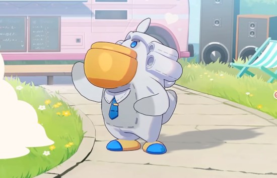 鸭法士整体呈现白色外观,最引人注目的便是它那巨大的鸭嘴造型,搭配蓝色领带与装饰,显得既庄重又带有一丝滑稽感。头顶独特的发型极具辨识度,手持法锤的形象进一步强化了它“审判者”的自我认知。在崩坏因缘精灵的设定中,鸭法士常常幻想自己是一名真正的法官,热衷于在战斗中进行“宣判”,这种强烈的表演欲让它在战场上总是格外显眼,也为整个队伍增添了不少趣味性。