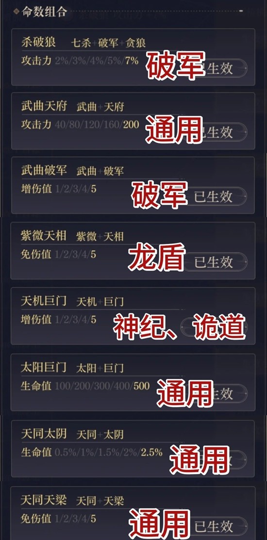 其中有三个主星适用职业受限,并且单属性增伤辅星只适用于这单一属性的密探。
