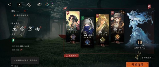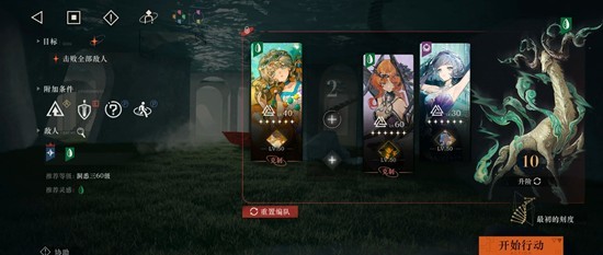 这关的要点是每一轮出的牌中最后一张必须是组长的牌,boss的弱点属性随着打出的手牌下面的颜色变化,组长都是吟诵牌,垫底出必是岩属性,然后练度像我这样比较低的情况下,要在2 3面多留一下攒畏惧。
