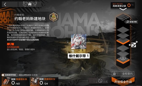 保全派驻模式是以类集换式卡牌游戏的玩法为主的游戏模式,常驻开放。通过此模式可以获取模组升级所使用的材料数据增补条和数据增补仪。那么游戏中明日方舟保全派驻荒地约翰老妈新建地块应该怎么通关呢?小编为你准备了一份攻略,一起来看看吧~