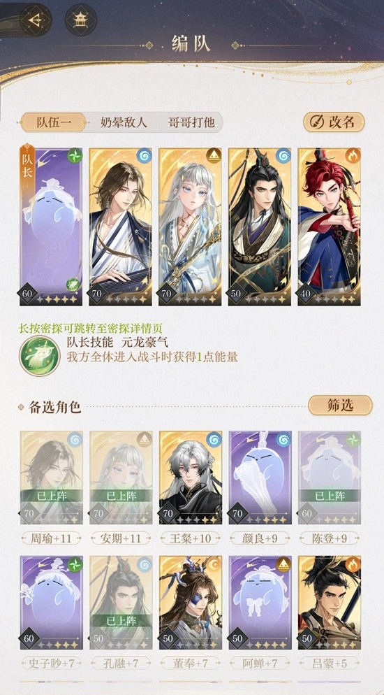 ①密探上一些能量短的,能快速开大的。
