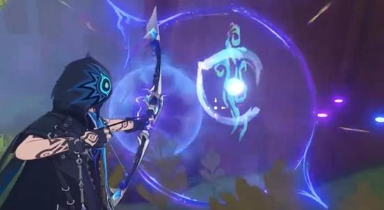 欧洛伦的普通攻击宿灵闪箭可以进行三段连续弓箭射击,重击时会将雷元素附着在箭矢上形成强力瞄准射击。当玩家长按瞄准按钮时会进入灵觉状态,这种状态下可以从灵谜涂鸦和灵谜纹中汲取力量,让每支箭矢的威力大幅提升。在空中发动下落攻击时,欧洛伦还能释放箭雨造成范围伤害,有效应对聚集的敌人。