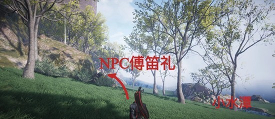 2.走到左侧大石头后面,与NPC傅笛礼对话