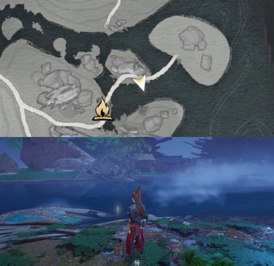 ②传送深泽天涯客,顺着小路走到旁边的小岛上(天涯客和主线任务之间的小岛),在水边拾取「木材」