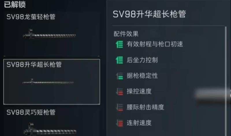 SV98作为一把狙击步枪,改装时需要重点考虑射程、后座控制和据枪稳定性。在枪管部分推荐使用SV98升华超长枪管,这个配件能有效控制后座力,提升据枪稳定性,同时大幅延长武器射程。安装这个部件后,可以很好地弥补武器的短板,提高在三角洲行动实战中的实用性。