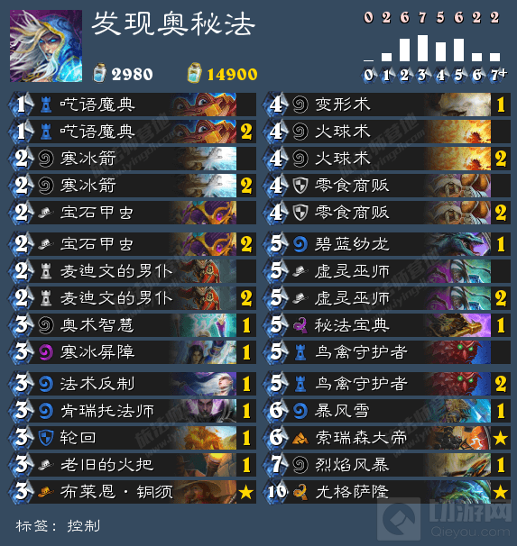 再来说说这套牌的整体情况。说是奥秘体系,带的奥秘只有4个。说多不多,说少其实也不少了。更多的奥秘其实还是通过发现机制找到的。虽然没了复制能一直通过甲虫找,但是配合铜须还是够用的。虽然过牌不多但用于找牌能力很强所以不用担心手牌不足。起手方面找末日有雷诺要留,其他随缘。还有些经典的COMBO比如3费轮回4费水爹啦,就不多说了。最后就是一些欺诈手段啦。比如你打猎人读出他8费能直接三宝,就七费瞎JB挂个奥秘果断无比先挂再说那种,我相信对面起码有50%以上的概率会思考改变策略。(当然猎爹面前这些都是浮云,但能欺诈到人感觉确实不错的。)