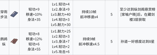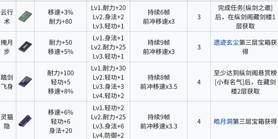 踏剑飞身和穿雨步法均通过挑战纵剑阁更高层数获得。踏剑飞身需完成纵剑阁第二层挑战,修习后轻功提升5点,移速增加8%,耐力额外增加100点。穿雨步法则需通关第三层,提供10%移速加成、9点轻功与35点身法提升。这两门轻功在江城创业记中属于中期核心配置,大幅优化角色在战斗与探索中的表现,是进阶玩家不可忽视的选择。