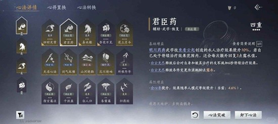 同时培养「六重易水歌」「流派金」「四时无常」三本心法。