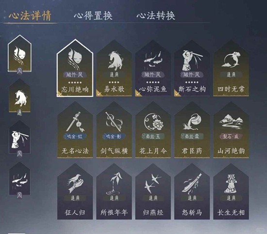 金通用与金流派心法转换比例为3比2,即3张金通用心法和2张金流派心法可以互相转换。