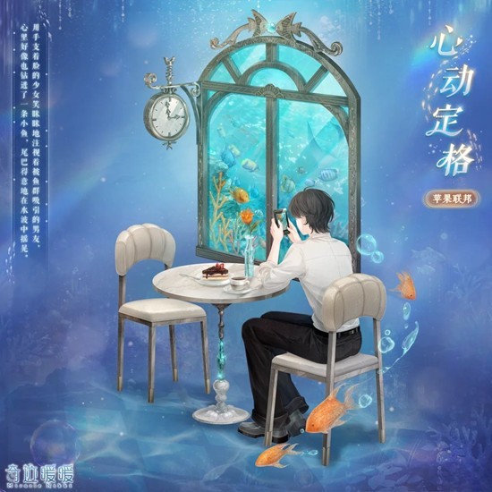 雅致的餐厅内,成群的小鱼隔着玻璃欢快摆尾,和伙伴们共同见证一场美妙的约会。快来收集心动留影,记录甜蜜点滴,获取精美约会主题套装!