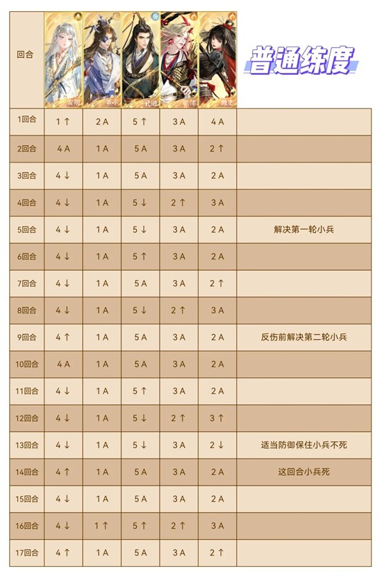 图上的练度算是我过这关的极限,后期要控血让小兵在14回合死(防御减少反伤伤害),如果练度比较高实在控不住血也可以尝试p4的表格直接强杀。