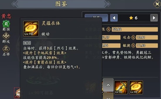 黄忠的被动技能机制围绕“烈弓”状态展开。每回合开始时,他会自动获得3层烈弓效果。该状态不仅能强化技能平地风雷与重剑,还能通过受到伤害叠加层数,最多叠加至8层。每当叠加一层烈弓,黄忠就能获得固定的4.5%伤害加成。满层后,这一增益将转化为持续的输出提升,使得他在战斗中越战越强。这种机制让黄忠即使在战斗初期也能快速建立输出优势。