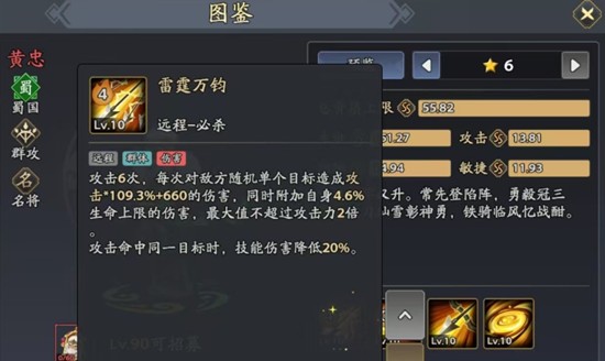黄忠的主动技能平地风雷针对单体敌人造成高额伤害,并附带暴击率提升效果。虽然他以群攻见长,但这一技能在面对高威胁单位时同样具备斩杀潜力。其必杀技雷霆万钧可进行最多6次随机攻击,每次命中不同目标时不会衰减伤害,且基于自身生命上限附加额外伤害,该百分比随技能等级提升而增长。因此,在保证命中的前提下,选择分散目标能最大化输出收益。