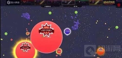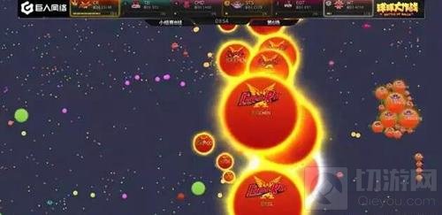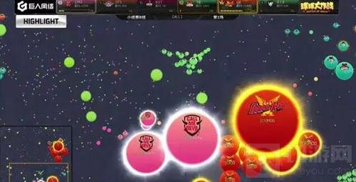 STS战队和SC战队对上,两队都是以小球形式游走,突然,SC战队突袭吃掉一个小球,而STS战队反应迅速,反吃SC战队,瞬间SC战队覆没!勇夺一位!