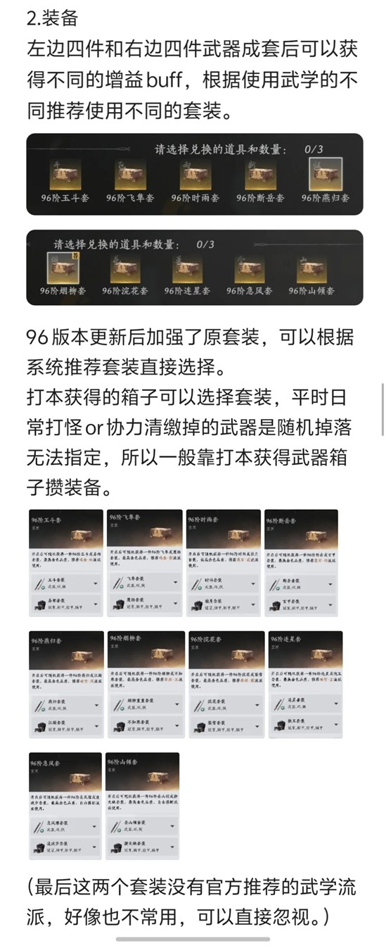 (最后这两个套装没有官方推荐的武学流派,好像也不常用,可以直接忽视。)