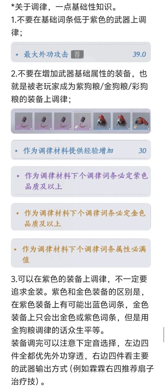 2.不要在增加武器基础属性的装备,也就是被老玩家成为紫狗粮/金狗粮/彩狗粮的装备上调律;