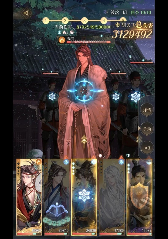 由于甄宓的伤害受到最大生命限制,反伤体系的伤害来源是最大生命而不是攻击力(也就是一般意义上的生命模型)。因此最重要的配队肯定是提升最大生命的董奉。在董奉加入后,其他生命值模型密探也可以喝到汤,最重要的就是张燕,他只要不开【噢】命盘就是一位伤害非常高的生命值模型密探。