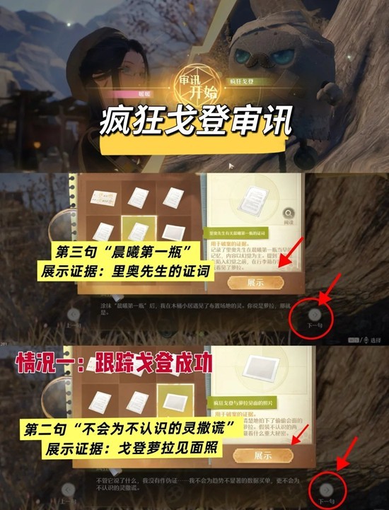 【审讯举证】注意右下角,可以调整【下一句】