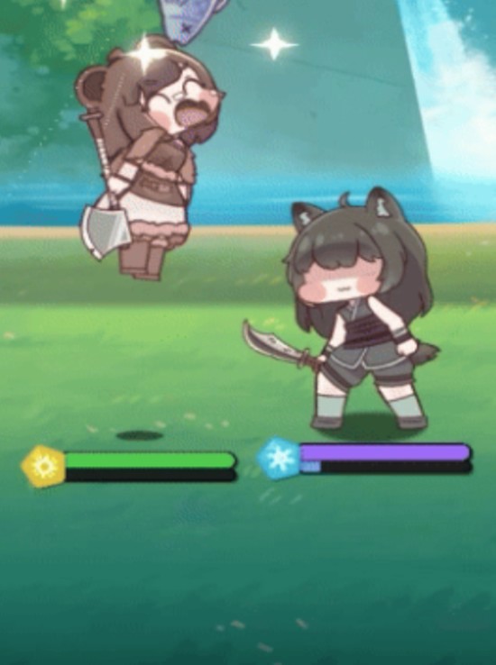 班尼是一位具有兽人特征的角色,整体设计充满野性风格。她的普通攻击使用斧头进行单体物理输出,而技能蜂蜜鱼不仅能召唤鱼类单位,还能在攻击时为自身或队友回复生命值。她的另一个技能“砍你”则是范围型物理伤害,命中后可对周围敌人造成打击并附加眩晕效果。这种兼具输出与控制的能力,让班尼在前线作战中具备较强的压制力。