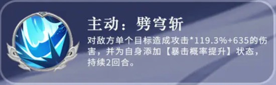 张辽的主动技能劈穷斩同样是单体高伤技能,除了造成可观伤害外,还能为自己施加持续两回合的暴击率提升效果。这一机制让他在连续作战中能更快进入高暴击状态,配合其他技能形成良性循环。该技能在团战开启或针对关键目标时使用,能有效加快击杀节奏,是张辽维持输出稳定性的重要手段。