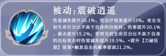 另一个被动震破逍遥则侧重于生存与环境适应性。张辽自身拥有20%的基础伤害减免,若在该状态期间受到治疗,治疗效果额外提升33%。当攻击生命值低于自身的敌人时,伤害提升20%,暴击时额外再增15%。此外,当前生命值越高,所受伤害越低,最多降低16%。这些设定让张辽在残局和逆风局中依然保有反打能力。