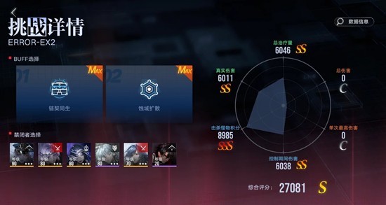 这关没什么打法,能量给控制角色续上,一直控制鸭宝,有核就破,尽量都破掉。主要是分享一下可以上的角色位。还是很好拿分的,有恐惧队的话分应该会很高。