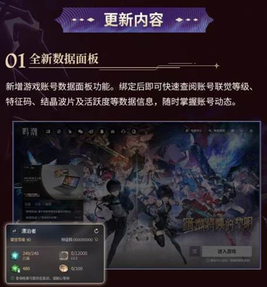 鸣潮官方启动器迎来了一次重要的更新,全新的数据面板功能于2025年10月16日11:00(UTC+8)正式上线。此次更新为玩家提供了一个全新的界面,使得账号信息的查阅变得前所未有的便捷。