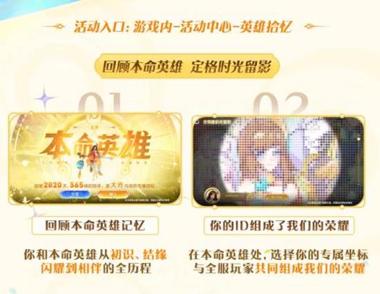 玩家登录游戏后,可以立即开启“英雄拾忆”之旅,重温与本命英雄的高光时刻。在本命英雄处,玩家可以选择坐标留下自己的ID,与全服玩家共同组成王者荣耀的荣耀地图。