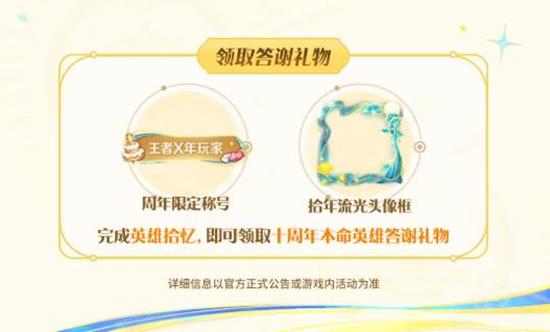 完成英雄拾忆活动后,玩家将获得《王者荣耀》送出的答谢礼物,包括全新的【周年限定称号+拾年流光头像框】。领取称号后,玩家需要前往背包中使用,并且可以晒出自己的本命英雄。