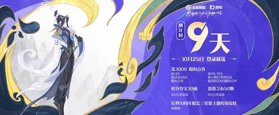10月25日十周年庆当天,登录游戏即送1000限时点券(十周年期间,参与活动最高可获得3000点券)、积分夺宝30抽、蔷薇之心50颗等豪华福利。