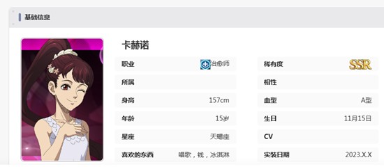 卡荷诺的基础面板显示其战斗力为7114,体力高达4821,在同类型的治愈师中属于上游水平。魔力值达到446,防御力也有281,这使得她在面对敌方技能时具备一定的抗压能力。虽然身高仅有1米57,但这一设定并未影响她在战场上的发挥。相反,她灵活的技能组合让她能在战斗中快速响应队友状态变化,无论是提前施加护盾还是及时回复残血单位,都能有效维持队伍节奏,避免因治疗不及时而导致团灭。