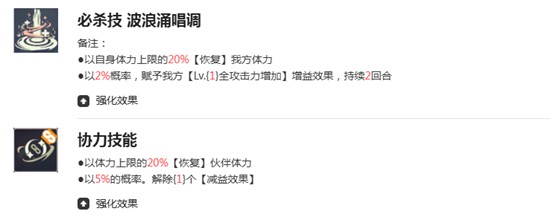 作为卡荷诺的必杀技,此技能以自身最大体力的20%为基础,为全体队友恢复生命值。若她的体力经过装备和被动叠加已达到较高数值,则一次大招便可让全队重回健康状态。此外,该技能还附带2%概率触发全体攻击力提升效果,虽触发几率较低,但在关键时刻仍可能带来意外优势。配合其专属被动技能,可额外提升10%的体力上限,进一步放大治疗与护盾的数值表现,形成良性循环。