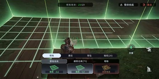 在进行地块标记时,地面会浮现绿色光效,直观显示已被占用的区域。同时,系统会弹出提示,告知玩家当前已标记的地块数量。这一视觉反馈让玩家能清晰掌握自己的领地范围。标记完成后,玩家可自由在地块内放置地基和建筑,所有处于地块范围内的结构都不会因环境腐蚀而损坏或消失,确保了家园的长期稳定性。
