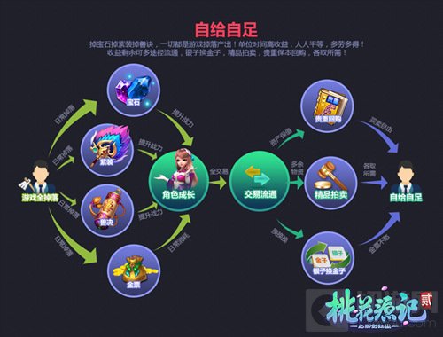 《桃花源记2》以海量数据为原型,搭建游戏内可持续的自我成长设定,不同类型的玩家可根据自我需求,在游戏里获得自我需求的满足,实现自己的回合梦。