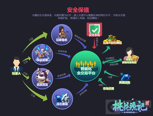 对于玩家来说,游戏中的每一个数据都是玩家的财富,所以帐号安全即是对玩家财富的安全保障。《桃花源记2》极大注重玩家帐号安全,游戏内置角色交易平台。通过角色交易平台可以安全的交易帐号,从本质上保障玩家的帐号利益。而交易平台由官方的安全部门专业监控,能从根本上保证玩家的帐号财产利益。