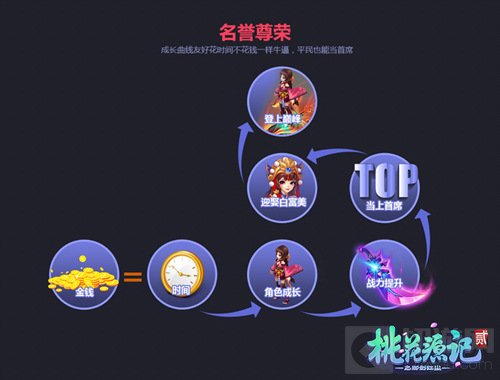 在《桃花源记2》里,只要你肯花时间,不花钱也能当首席,在良性的成长机制上,一切皆有可能。