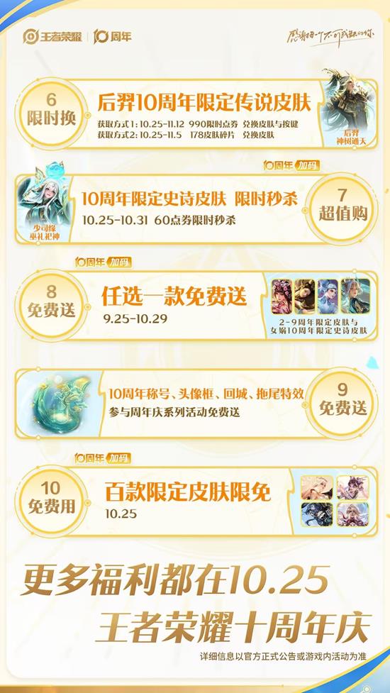 更多福利,都在10.25王者十周年庆~
