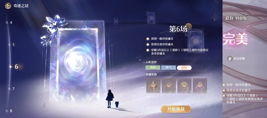 2、第六关三星要求5件及以上【清新】【冒险】,个人实测最低完美线91076。