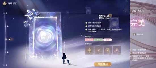 3、第七关三星要求5件及以上【甜美】【浪漫】,个人实测最低完美线95836。