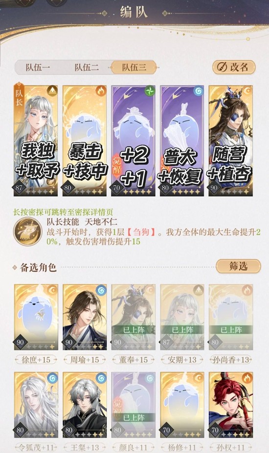 2.董奉技能 陈登技能 觉醒颜良普a都可以加攻击 所以在不违反机制的情况下 尽量在安香技能前用了