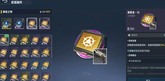 黑索金插件为暗夜之殇提供了高达53%的伤害加成,是当前版本中不可替代的核心增伤模块。一旦激活,即可直接拉高整体输出上限,尤其适合搭配高频率射击模式使用。雷酸汞插件则侧重技能循环,能够有效延长主动技能的释放次数,提升三连发等机制的触发频率,增强战斗中的灵活性与应变能力。这两个插件在逆战未来的中前期阶段具有极高性价比。