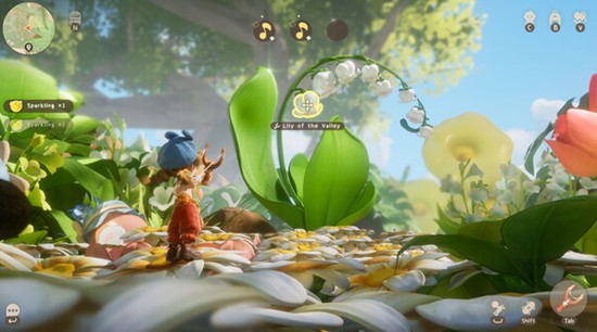 采集过程需要借助特定工具才能完成。例如弹弓可用于震落高处的花粉团,而阳光瓶则能收集散落在花瓣间的光点。不同工具对应不同类型的资源,部分高级工具需通过完成任务或升级家园设施来解锁。玩家在操作时要注意体力值的消耗,合理安排采集路线可以避免频繁回程补充能量,从而提升整体效率。