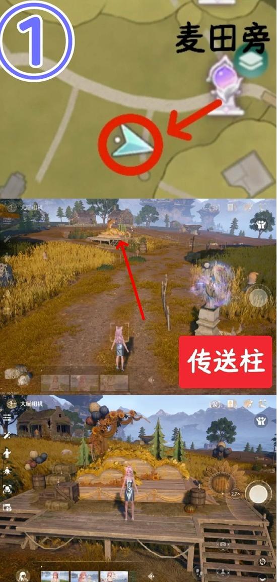 ①与麦浪农场的「丰收舞台」合影,传送到【麦田旁】→往右前方的舞台走→在大舞台上打开拍照即可。