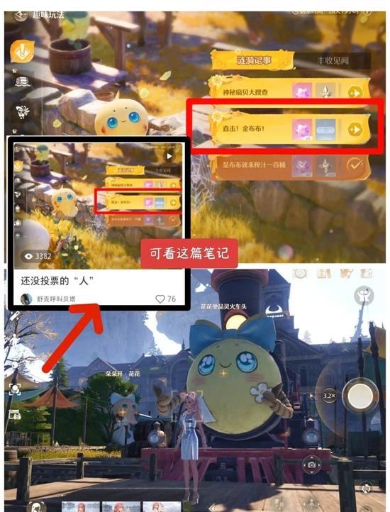 逸事任务【直击!金布布!】按照指引做任务,和胜出的朵朵开·花花合影。