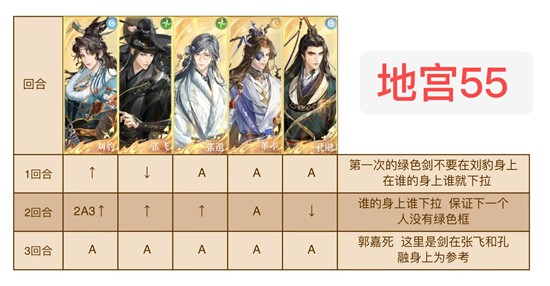 郭嘉每回合随机给人挂上绿色剑 绿色剑下拉下一位成为目标 普攻会把绿色剑往上传 大招攻击1.3.5号位 不能让绿色框成为目标 核爆队速战速决