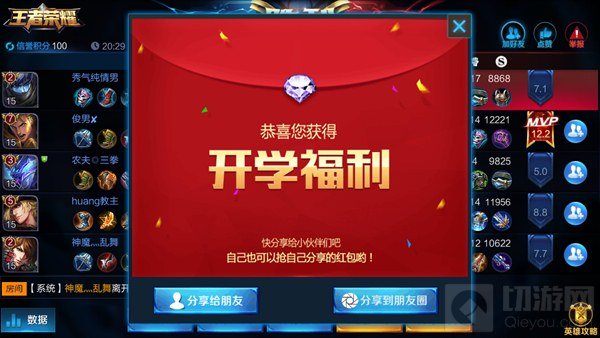 少数情况下,如果遇到网络问题,导致对局胜利后开学礼包的分享资格未正常弹出,玩家只需再进行一次排位或5V5匹配,无论输赢,均能获得分享资格。