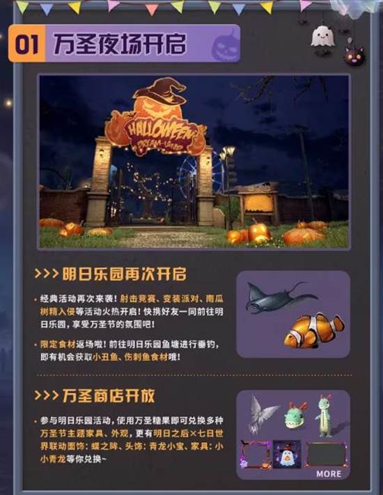 明日之后0月23日至11月7日,一系列万圣节主题活动将陆续上线,在这里,你可以参与射击竞赛、变装派对、南瓜树精入侵等经典活动,与好友们一同享受万圣节的乐趣。此外,限定食材返场,前往明日乐园鱼塘进行垂钓,即有机会获取小丑鱼、伤刺鱼食材~活动惊喜满满,我们先来一起看看吧!
