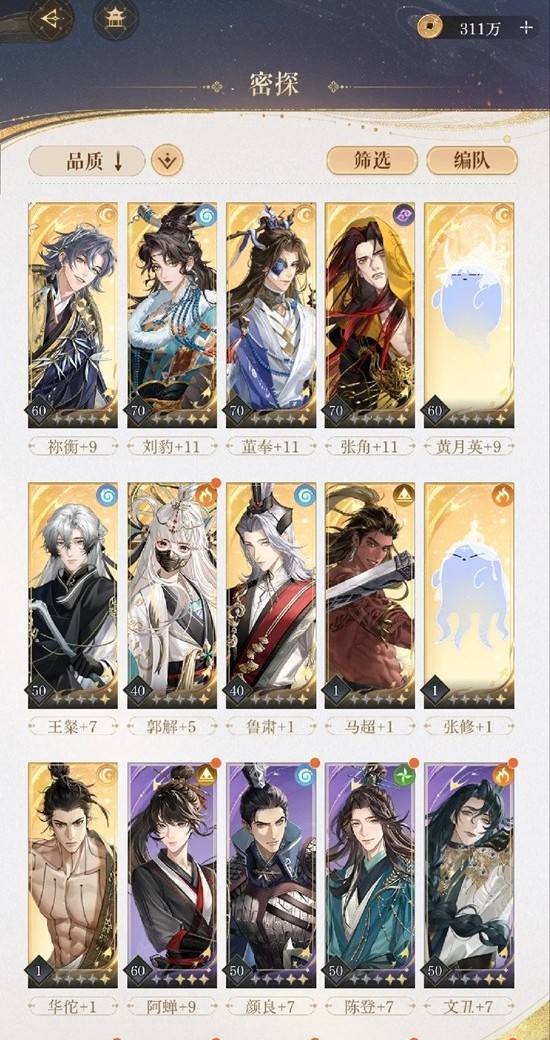 如鸢游戏中有着众多角色,他们被称为“密探”,分为地、水、火、风、阳、阴六种属性,破军、龙盾、岐黄、神纪、诡道五种职业。除了初始就加入的角色,其余的通过招募抽卡等方式获得。...