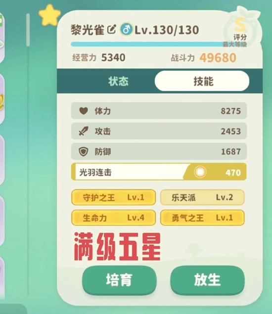 【黎光雀】全网最高战力就是49680+315=49995战斗力。